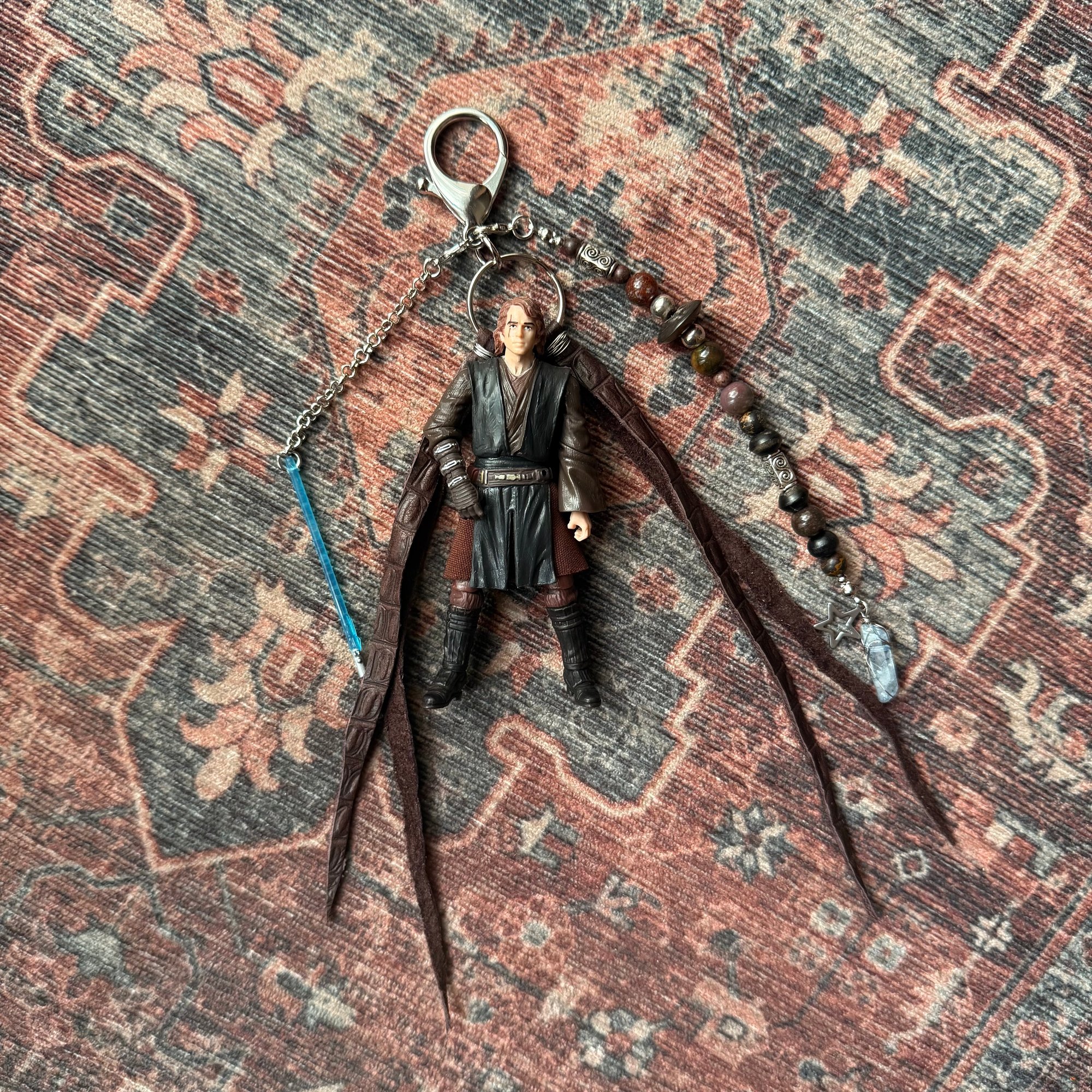 Anakin includes two leather tassels, a removable saber strand, and a removable bead strand with stone and metal beads, ending with a star charm and wire wrapped quartz!